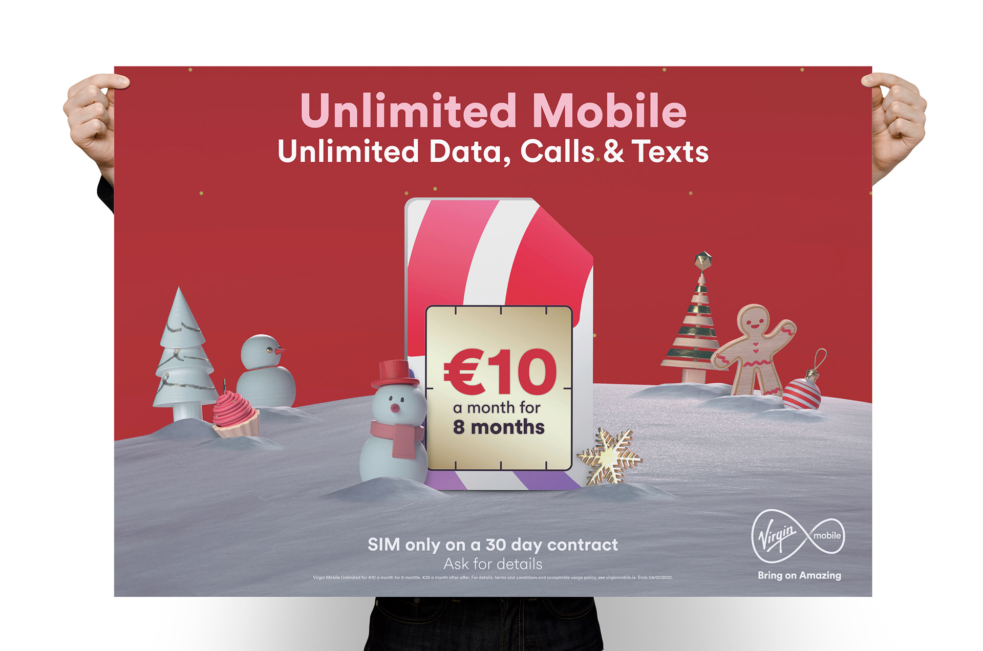 Virgin Media commissioned Oliver to create materials to run alongside their Christmas campaign. The campaign is created by Publicis. Publicis in turn work with Piranha bar on 3D elements.